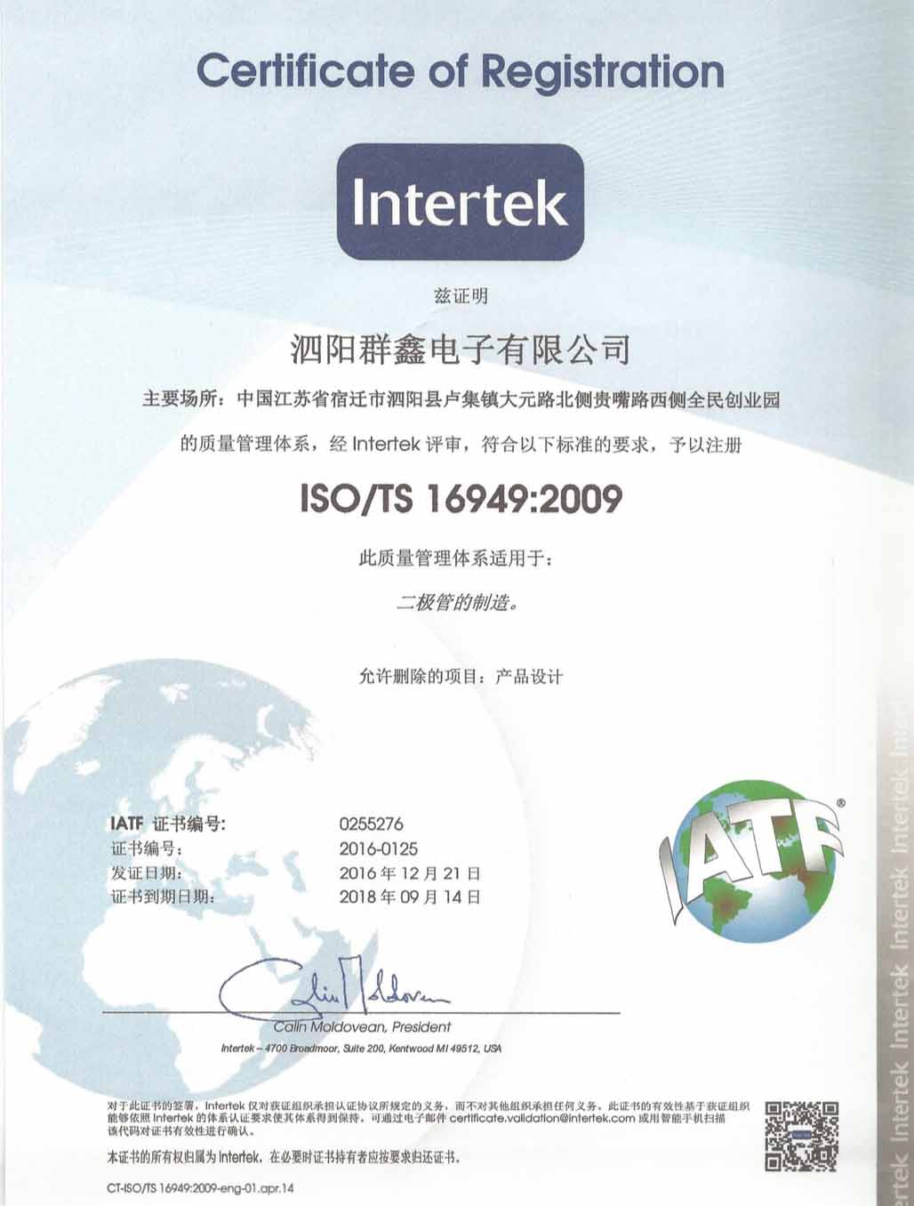 泗陽群鑫,品質(zhì)保證 – ISO/TS 16949:2009 認(rèn)證