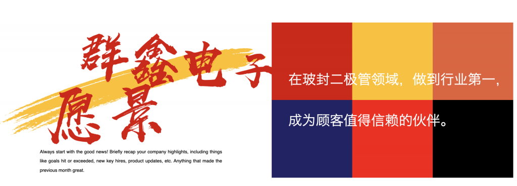 企業(yè)文化: 在玻封二極管領域,做到行業(yè)第一,成為顧客值得信賴的伙伴 創(chuàng)新&危機意識 1、 要治標,更要治本2、 要創(chuàng)新,團隊互信協作3、 要有前瞻思維與危機意識4、 要上升一個層次去思考。5、 要精益求精、不斷進步。 當責、顧客導向、團隊合作、創(chuàng)新、學習與成長 下面是泗陽群鑫電子有限公司的社會責任報告書,請下載查看。 Download PDF / 點選下面的編號自動下載 溫室氣體排放報告 File size: 1 MB Downloads: 2401 2021年度社會責任報告 File size: 7 MB Downloads: 3027 2020年群鑫電子社會責任報告 定稿版 File size: 525 KB Downloads: 1635 2019年群鑫電子社會責任報告 File size: 540 KB Downloads: 1718 2018年群鑫電子社會責任報告 File size: 478 KB Downloads: 1557